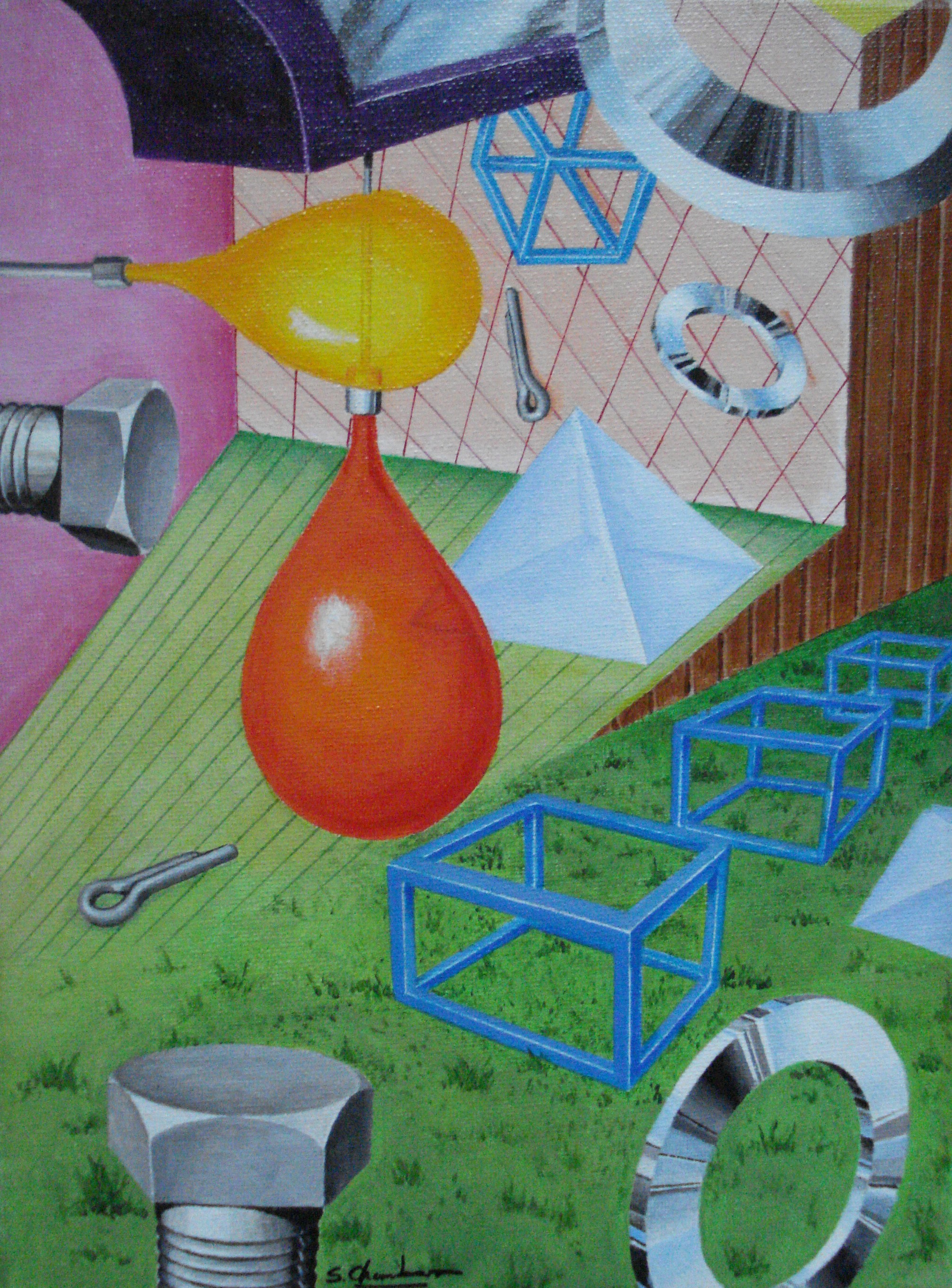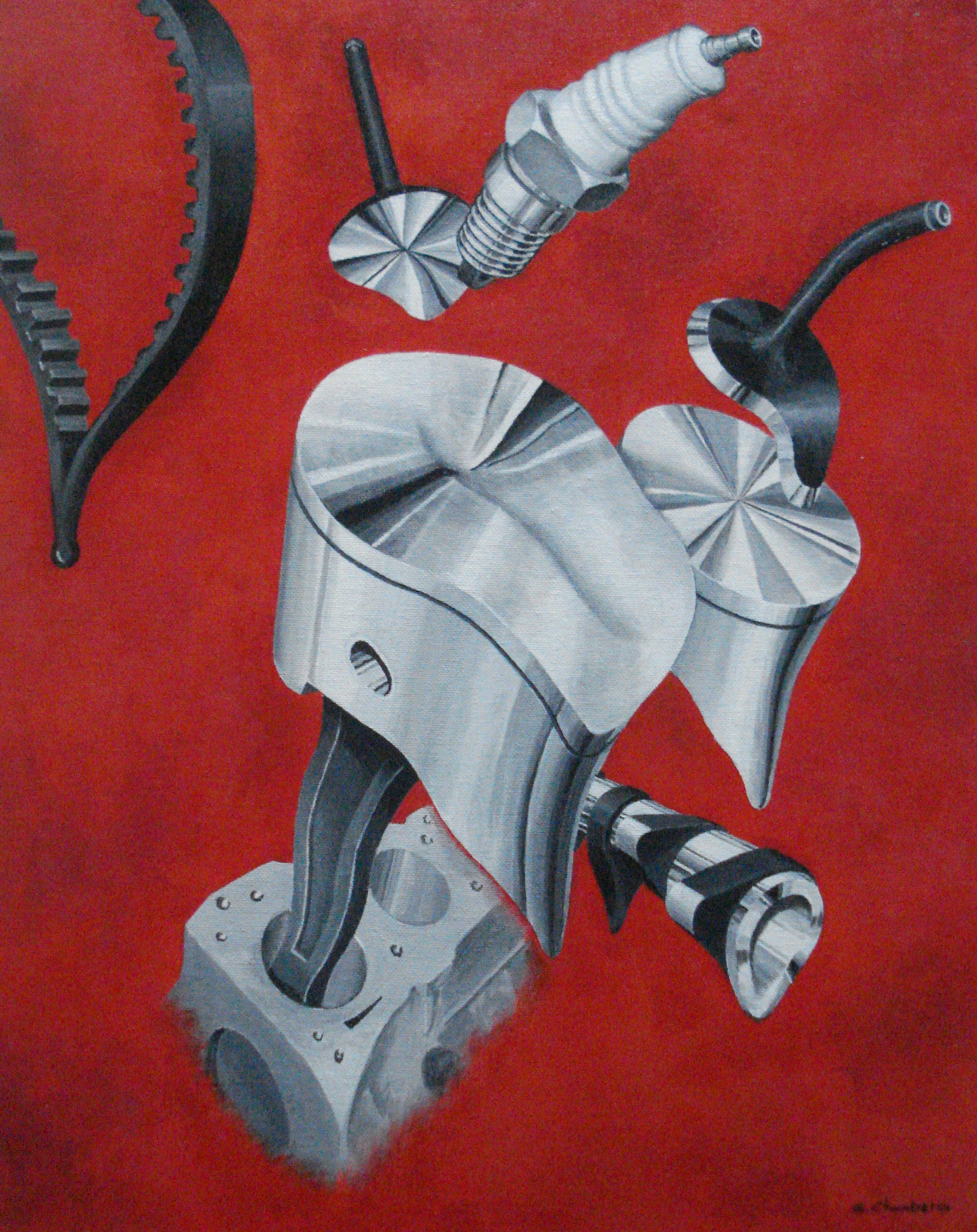 Warped Piston. Acrylic on canvas board 20″ x 16″ 506 x 405mm
