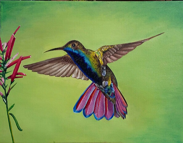Animals Leo. Oil on canvas. 22″ x 18″ 559 x 457mmPuma. Coloured pencil on cartridge paperTigger. Coloured pencil on canvas boardHumming bird. Oil on canvas